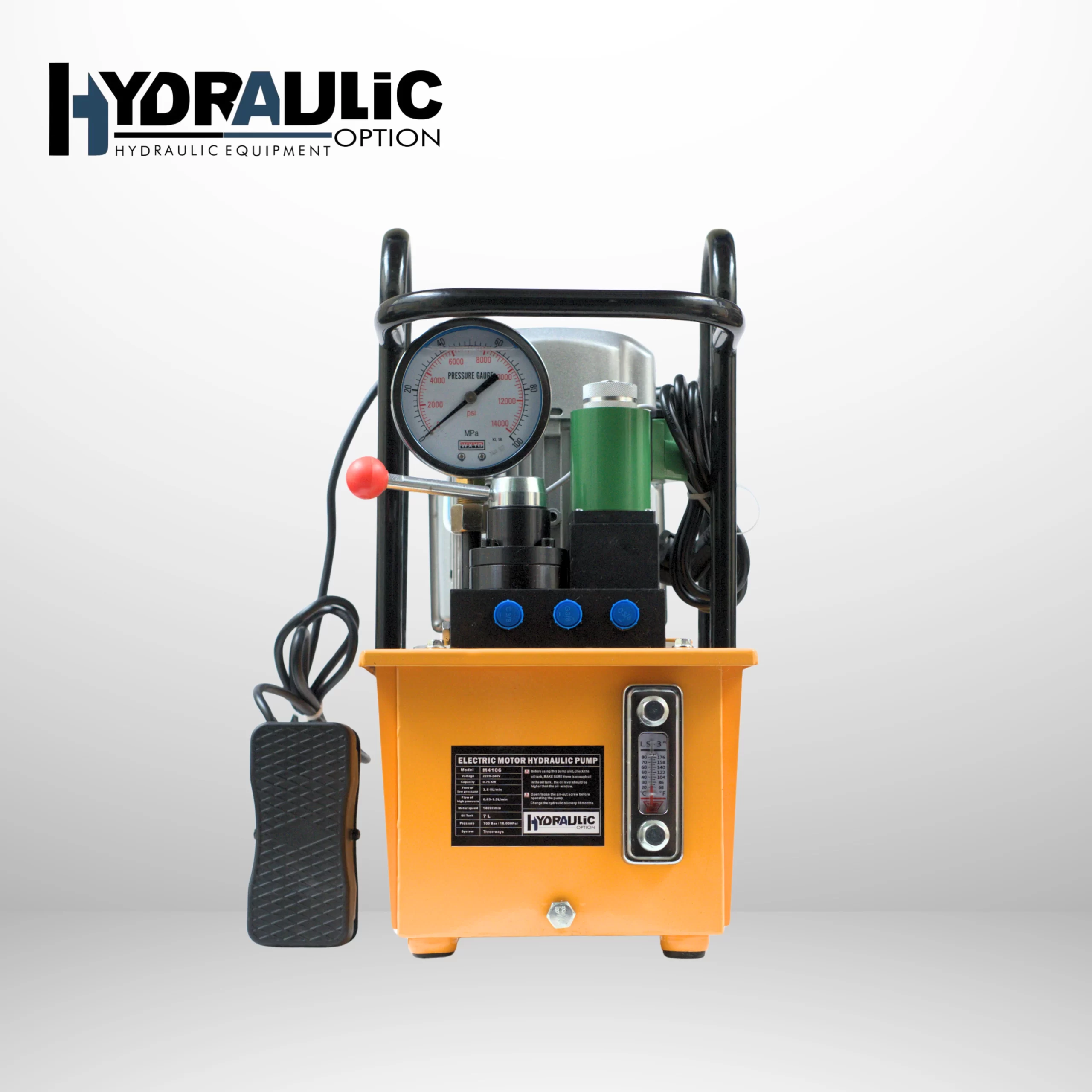 La bomba electrohidráulica M4106 de Hydraulic Option es un grupo de accionamiento hidráulico de simple efecto accionado por pedal, con triple salida para accionar 3 herramientas hidráulica (una a la vez), cada herramienta es seleccionable mediante un selector hidráulico manual incorporado.